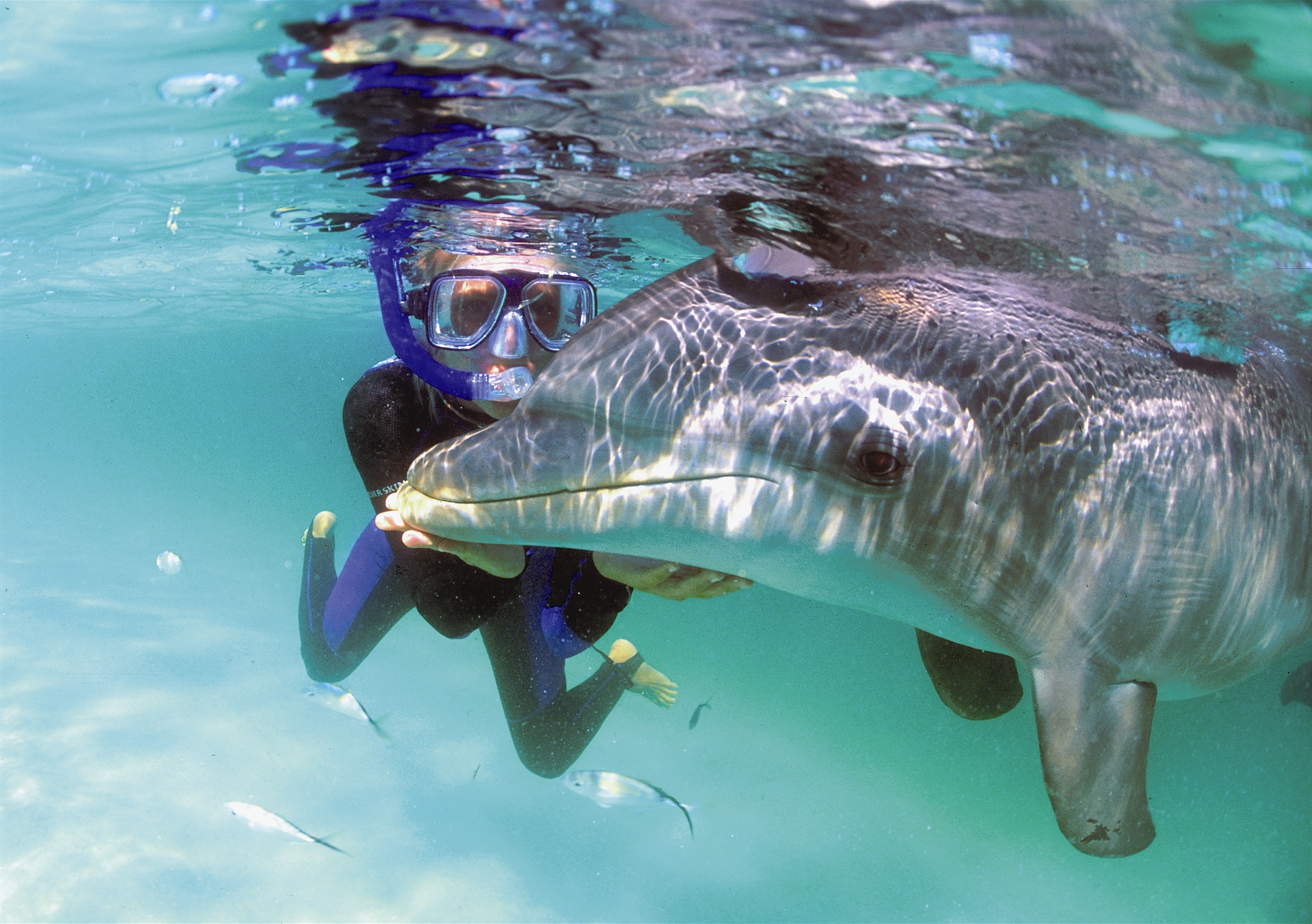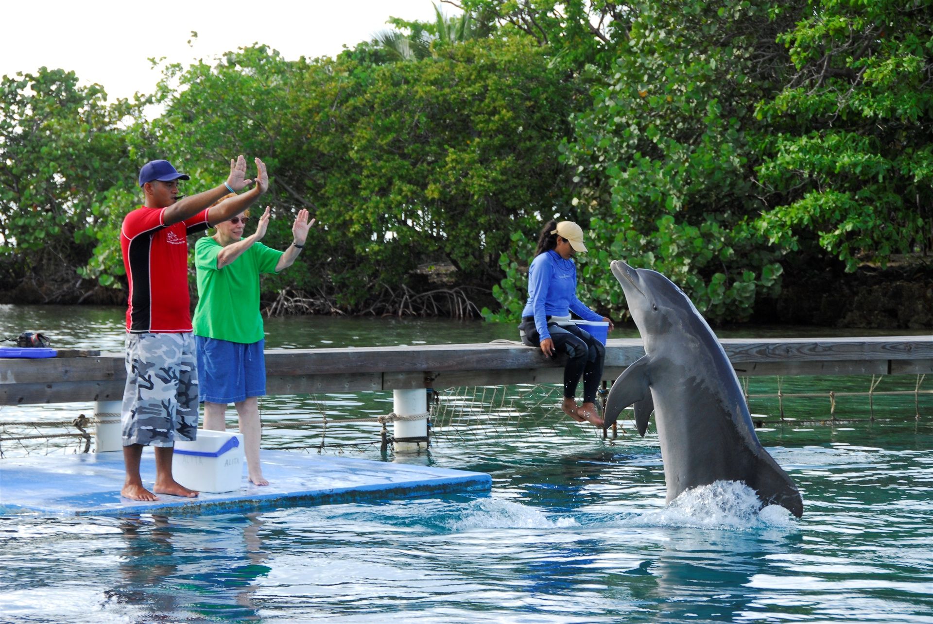 Immediately following the 30 minute Dolphin Encounter, this activity allows you to swim and snorkel with our resident pod of dolphins on their terms, with no trained behaviors. Experience what it would be like to be a ‘part of the pod’ in the wild – it’s a thrill you’ll remember for years to come. With a limited number of fellow participants, you’ll enjoy maximum physical contact with these friendly marine mammals as they swim along with you throughout a two-acre enclosure. You’ll be captivated by their natural curiosity, intrigued by their whistles and clicks as they communicate with each other, and delighted to see mothers and their calves swimming side by side.