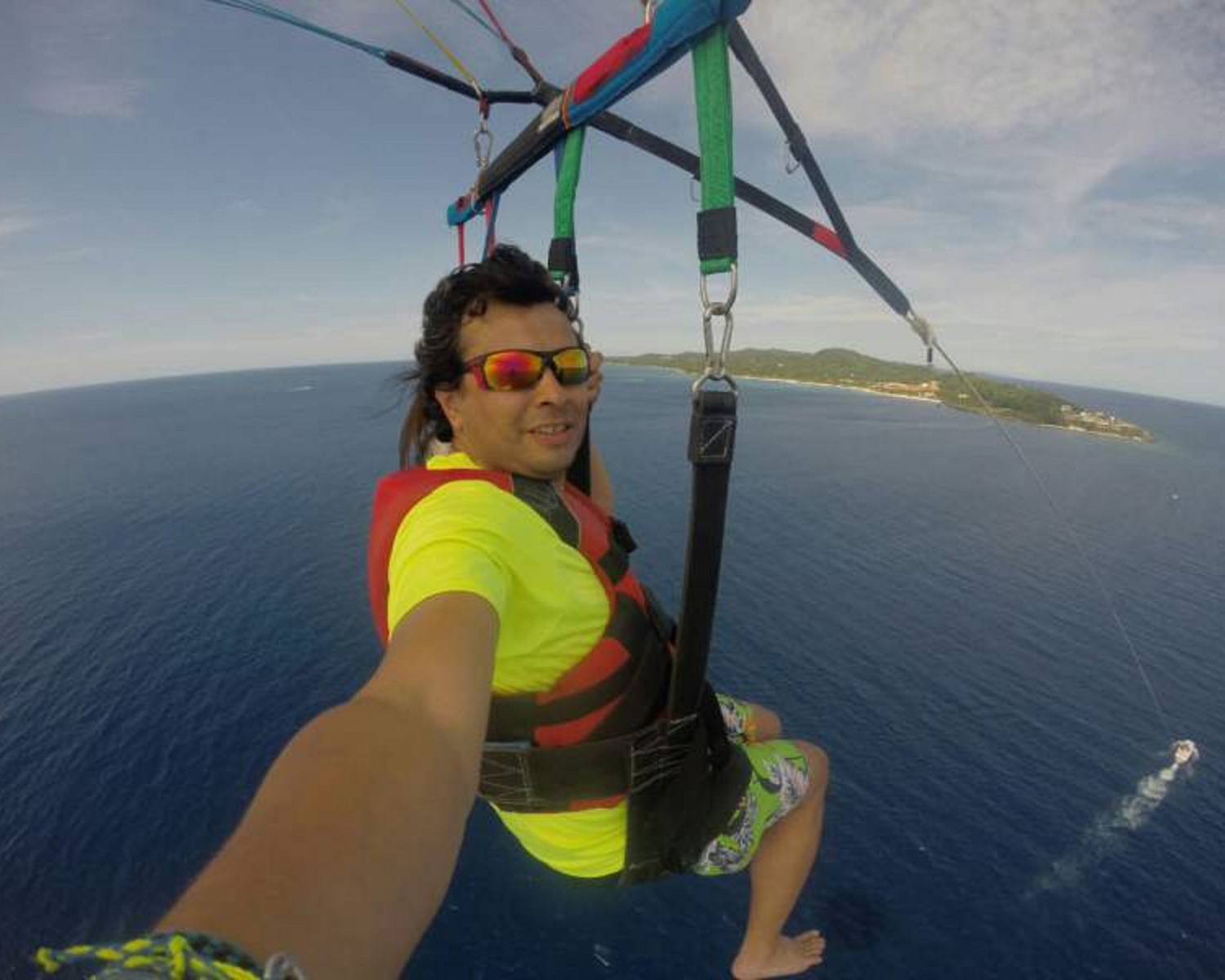 Parasailing is a unique opportunity to view Roatan’s natural beauty and reef system from above. Parasail high above the renowned West Bay beach and the western point of the Island. Enjoy breath-taking views from 600-800 feet while soaring above our magnificent living reefs, white sand beaches and flying eye level with peaked, jungle draped hilltops.